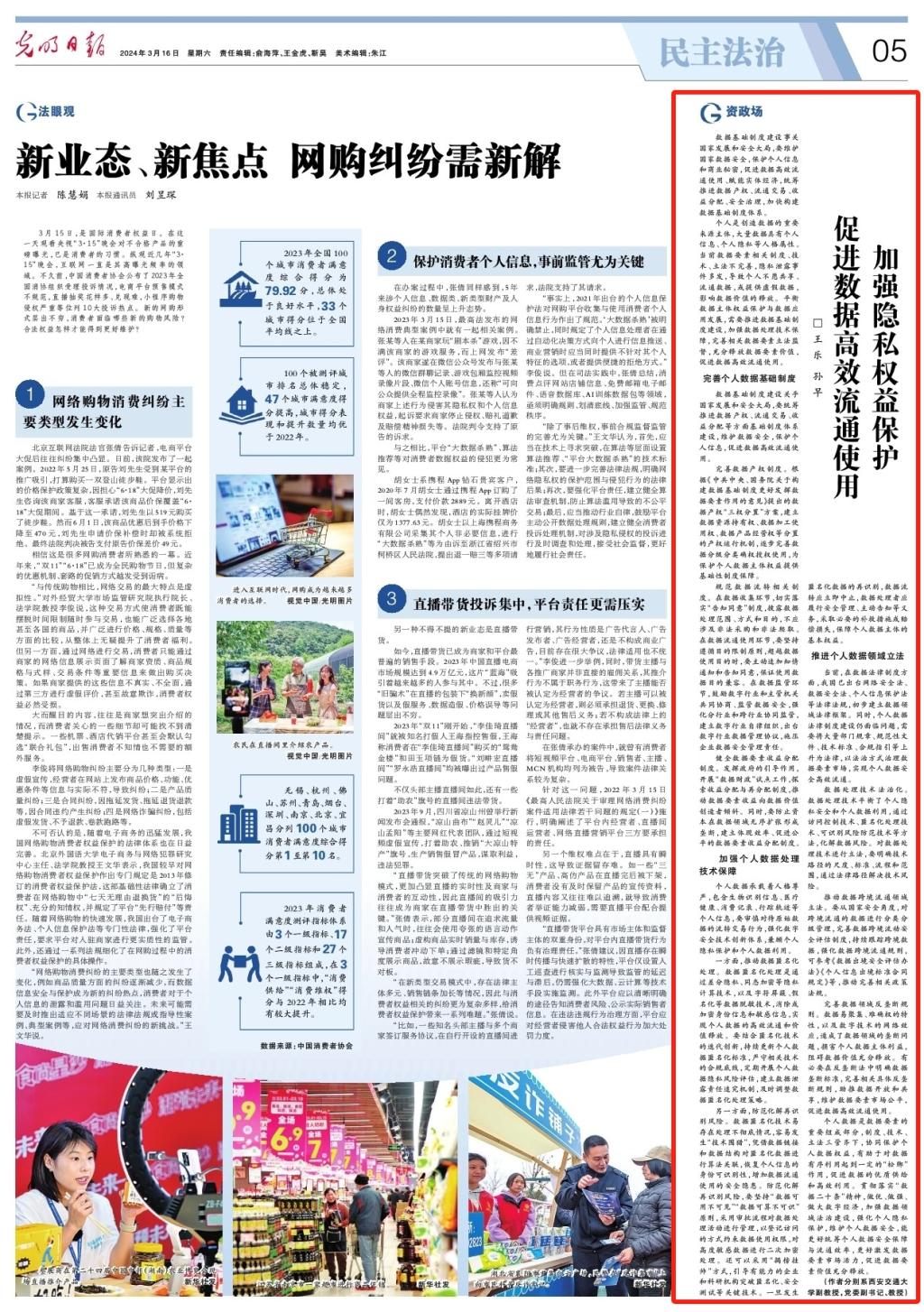 个人数据是数据要素的重要组成部分,制度、技术、立法三管齐下,协同保护个人数据权益,有助于对数据有序利用起到一定的“松绑”作用,促进数据的优质供给和高效利用。贯彻落实“数据二十条”精神,做优、做强、做大数字经济,加强数据领域法治建设,强化个人隐私保护,维护个人数据安全,能更好统筹个人数据安全保障与流通效率,更好激发数据要素市场活力,促进数据要素价值充分释放。