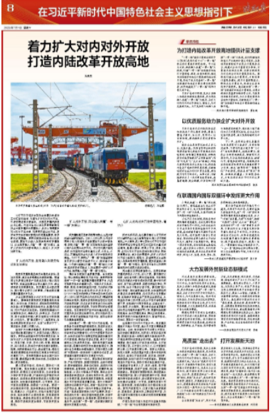 习近平总书记在听取陕西省委和省政府工作汇报时强调,要着力扩大对内对外开放,打造内陆改革开放高地。开放是发展进步的必由之路。习近平总书记多次来陕考察都对陕西开放发展作出重要指示,此次又强调要把对内对外开放并举,对陕西实施全域开放、推进全方位全领域开放提出新的更高要求、寄予新的更高期望。陕西要深刻体悟总书记的殷切期望,更加主动融入和服务构建新发展格局,更加深度融入共建“一带一路”大格局,在扩大对内对外开放中强动力、增活力,打开发展新天地。