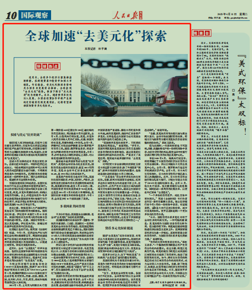崔建军教授接受了《人民日报》(海外版)的采访,分享了全球加速“去美元化”的看法。