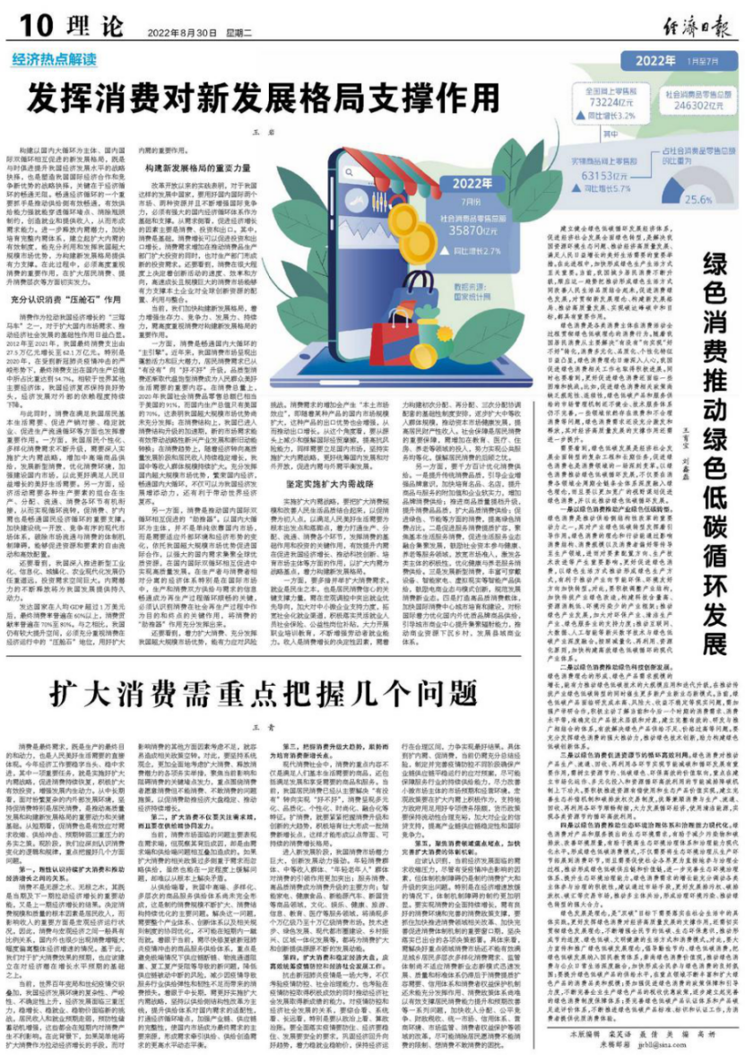需要看到,绿色低碳发展是经济社会发展全面转型的复杂工程和长期任务,促进绿色消费也是消费领域的一场深刻变革。以绿色消费推动绿色低碳循环发展,不仅要在消费各领域全周期全链条全体系深度融入绿色理念,而且要以更加宽广的视野谋划促进绿色消费,并以此推动绿色低碳循环发展。
