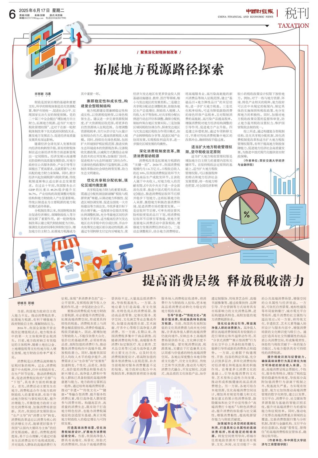 消费税改革是拓展地方税源的“关键一招”。2024年,我国消费税规模约为1.6万亿元,占税收总收入的近10%,但我国消费税征收环节大多是商品生产或批发环节,且该收入属于中央收入,对地方收入的贡献有限。《中共中央关于进一步全面深化改革、推进中国式现代化的决定》提出,推进消费税征收环节后移并稳步下划地方,这将拓展地方收入来源、激励地方积极改善消费环境,促进消费市场的繁荣发展。一是征收环节后移,可率先将征管风险相较更低的品目下划,将消费税征收环节后移至零售端,使地方更直接地从消费活动中获取税收,增强地方发展消费经济的动力。二是动态调整税目,结合地方消费特征,将高端服务业、高污染高耗能的新兴消费品等纳入征税范围,建立“基础品目+地方弹性品目”的双层结构,进一步扩大地方税基。三是优化税率结构,可适当降低鼓励消费的绿色环保产品税率,且对限制消费的高能耗、高污染产品提高税率,增强消费税对地方经济结构调整的引导作用,促进地方产业升级。四是建立补偿机制,通过专项转移支付,平滑对传统消费税集中地区的改革冲击,确保财政平稳过渡。