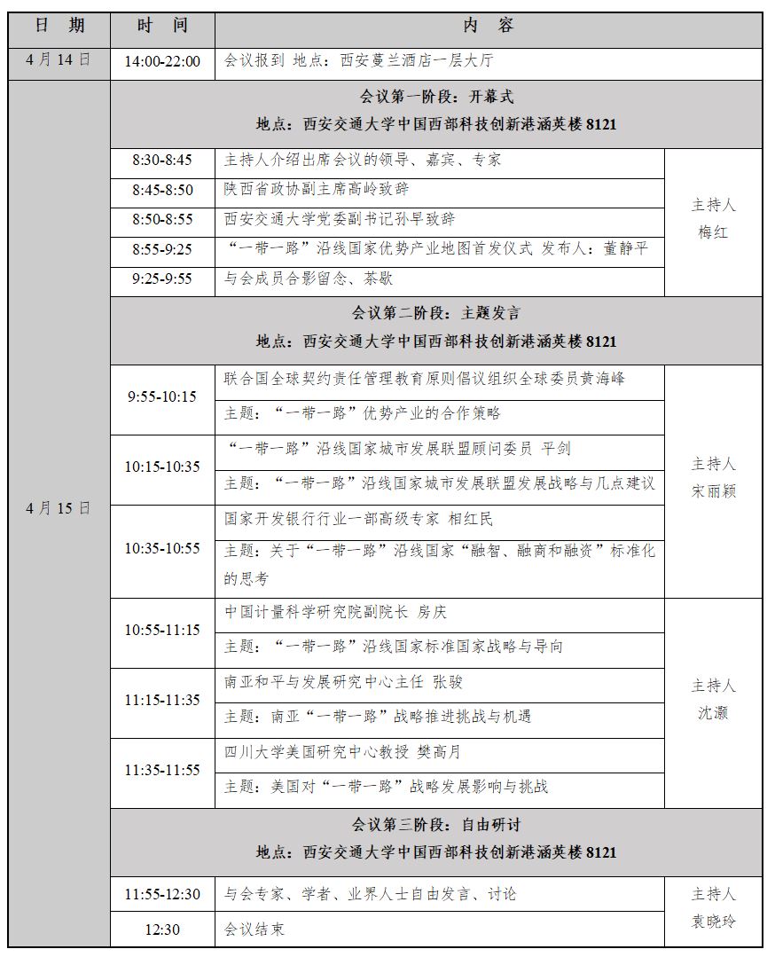 “一带一路”沿线国家标准高端论坛暨“一带一路”沿线国家优势产业地图首发式会议议程