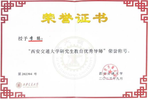 累计指导硕博研究生40余人,培养学生获校级优秀硕士学位论文2项,“挑战杯”国家级二等奖、陕西省特等奖等竞赛奖50余项,8人获国家奖学金及校级特等奖学金,2人获“清华农村研究博士论文奖学金”。