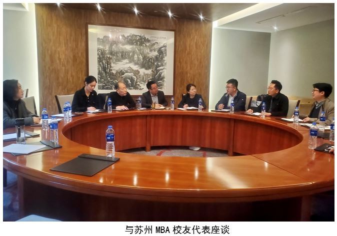 为进一步优化学院MBA培养体系,提升非全日制研究生培养质量,3月25日-26日,学院MBA中心先后与苏州数字金融方向MBA在读研究生、往届MBA校友及教务人员举行了三场座谈会。学院MBA中心马草原老师主持了座谈会,高培中心王凌云老师、校友办任小静老师及学院办公室周可心老师参加座谈。