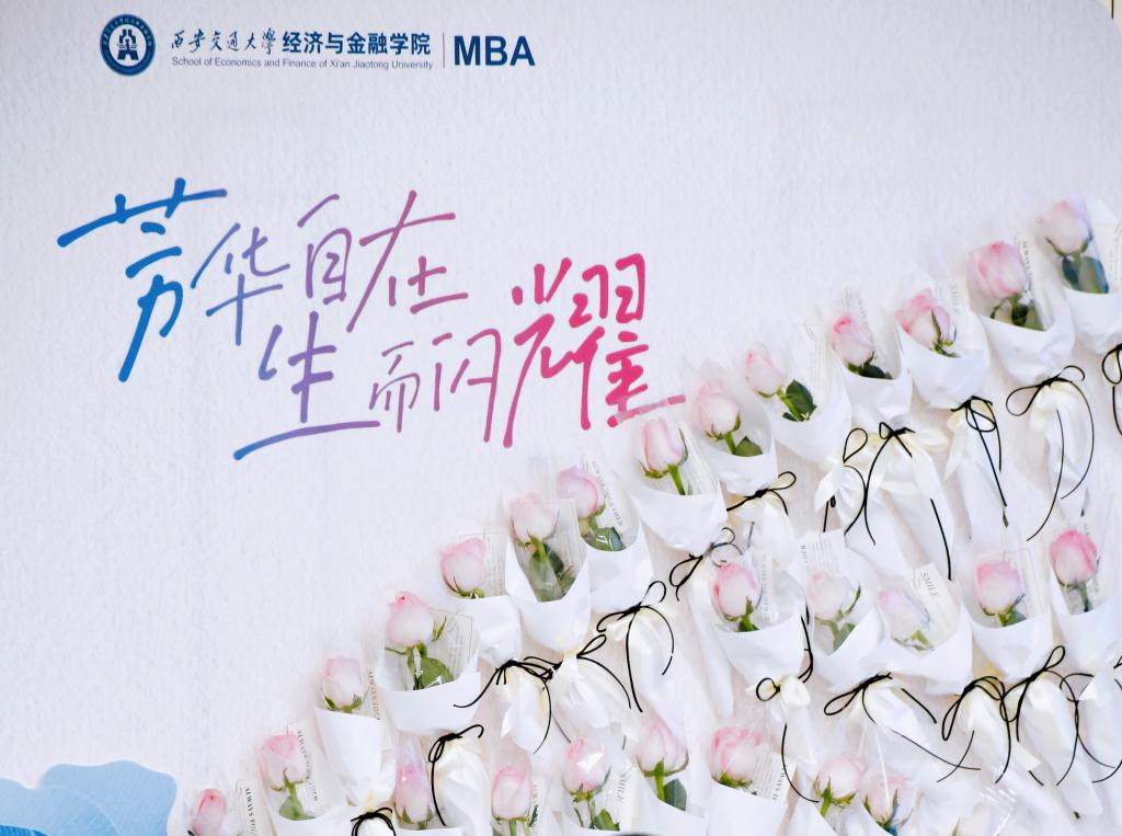 MBA项目始终关注学生的多维发展需求,致力于打造“知识传授-能力淬炼-价值升华”三位一体的培养体系,让每一位学员在这里不仅能获得商业智慧,更能找到心灵栖息地。时值国际妇女节,现场还布置了鲜花墙,准备了纪念品,细微之处彰显了对女性的人文关怀。盛放的繁花不仅承载着春日的蓬勃生机,更寄托着学院对MBA学子“在盛放时从容,向热爱处奔赴”的深切期许。愿诸位在此采撷智慧的花蜜,酿就理想的醇香!