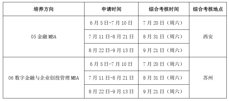 MBA(金融方向、数字金融与企业创投管理方向) “卓越人才夏令营”报名网址://xjtu.campuswit.com/enroll/jingjin/#/login 进行申请。