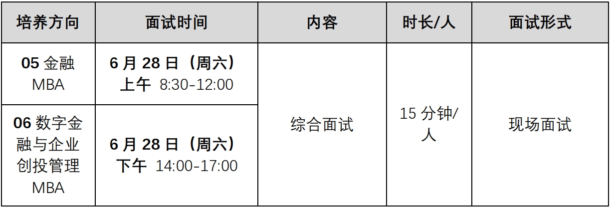 2026年MBA(金融方向、数字金融与企业创投管理方向)“涵英计划”第一批预审面试将于2025年6月28日开展。现将具体安排通知如下: